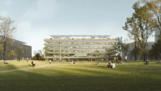 Burckhardt is planning two new buildings for the newly founded University of Technology Nuremberg (UTN): a head-end building with a strong presence on campus as well as a high degree of transparency, and a second teaching building that leaves space for future university buildings. Together, the timber-hybrid structures will become the new home of the UTN. The heart of the building, the centrally located auditorium, puts the focus clearly on the students.
