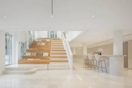 An existing office building has been transformed into a place that fosters creative exchange and efficient collaboration.