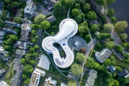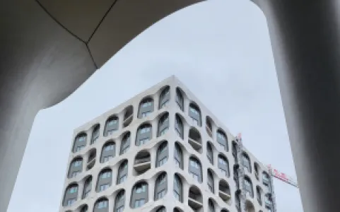 With the „Roots“ project, an 18-storey timber tower is being built in Hamburg‘s HafenCity. A total of 181 residential units will be built here, as well as exhibition rooms and the administration of the German Wildlife Foundation. All upper floors will be built with solid timber ceilings and interior walls, only the basement and ground floor as well as the access cores of the hybrid building are planned as concrete structures. This construction method not only contributes to the reduction of the CO2 footprint, but also limits noise emissions during construction and creates a healthy indoor room climate. A total of 5,500 m³ of softwood will be used in the realisation. A second façade made of glass ensures fire, UV and moisture protection. Sliding glass elements protect the surrounding loggias from wind and weather. With an exhibition centre featuring nature and wildlife themes, Hamburg gains a significant venue that will generate enthusiasm for nature and diversity and raise awareness for the preservation of both.